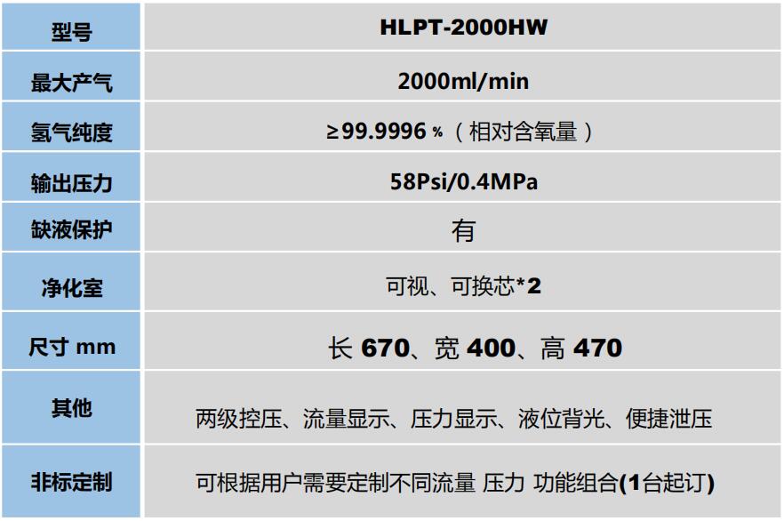 HLPT-2000HW Precision Trace 自動補水大型氫氣發生器